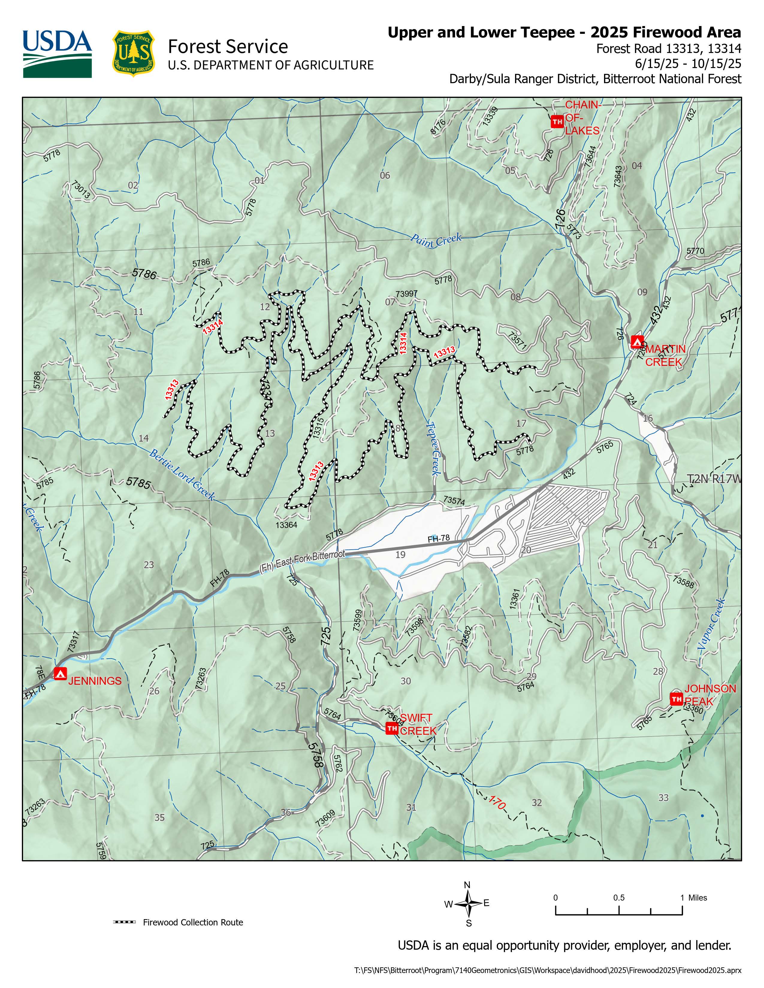 Your hard-copy permit will be issued at the office and is good through December 31, 2025. Firewood maps are also available at Forest Service offices or can be downloaded at www.fs.usda.gov/r01/bitterroot/maps-guides