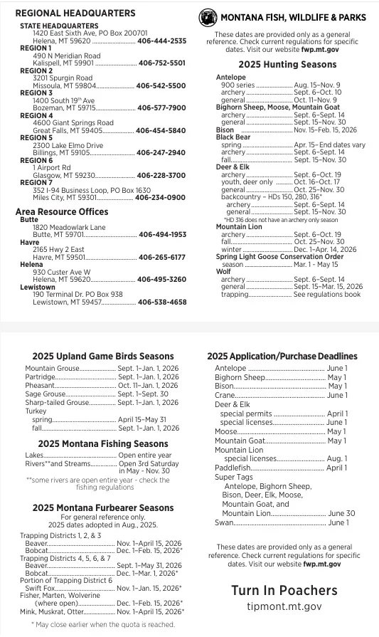 Before you shoulder your pack, chamber a round, or even hit the gas, do yourself a favor and check the season dates by FWP. Montana has plenty of hunting opportunities, but only if you know when they open. Screenshot it, save it, old school print it, write it on your arm—just make sure the info is with you when you need it!