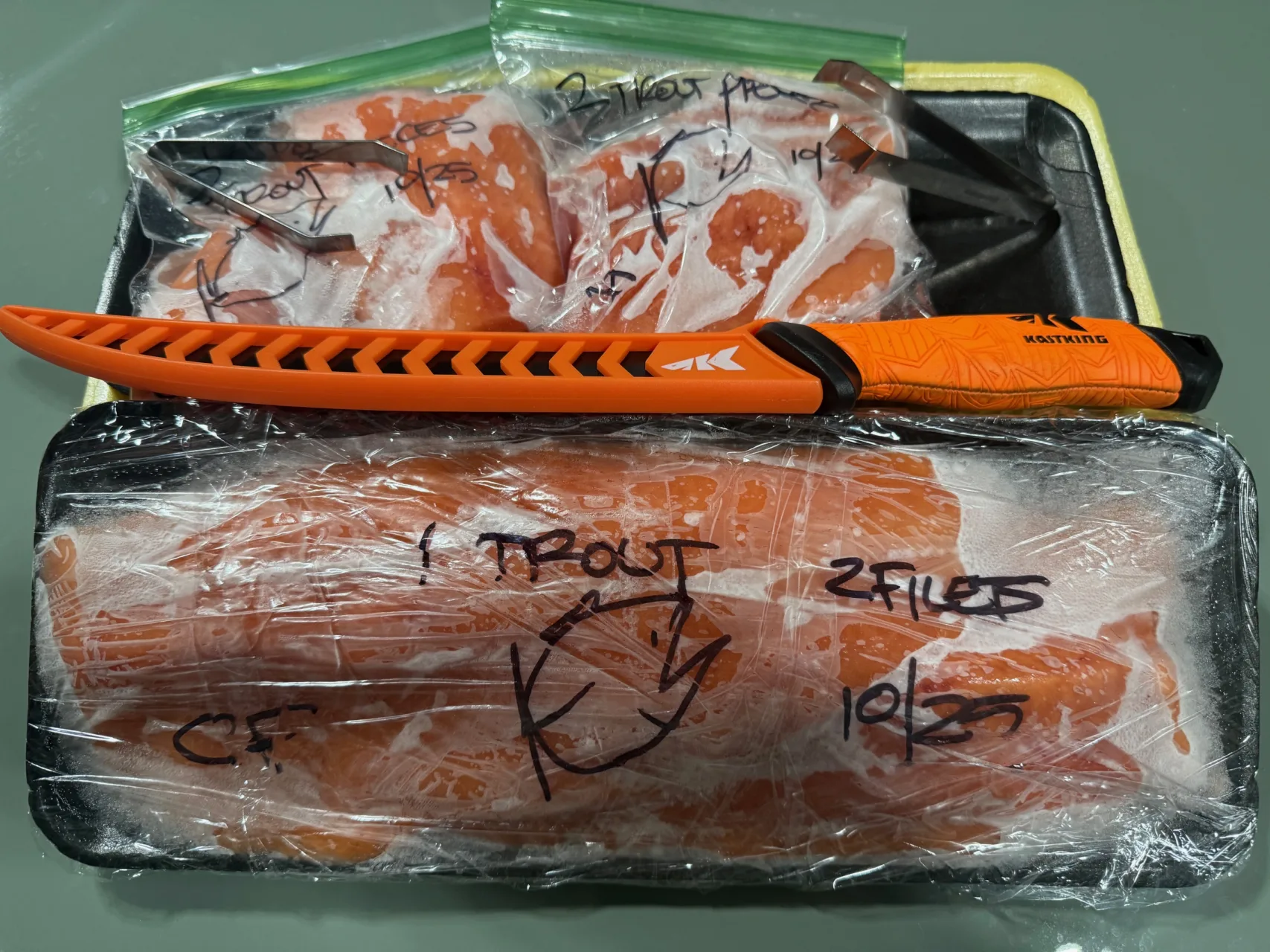When I filet the big Bows, I also skin them. Keeping the fish on ice during transport will keep them fresh. Try freezing a couple empty milk jugs, filled with water. This cools the fish without soaking them in cold water, which can make the meat mushy. I remove the pin bones with a pair of pin bone tweezers. The big filets are then cut into 3 large pieces each, the size you would get in a restaurant when ordering salmon.
