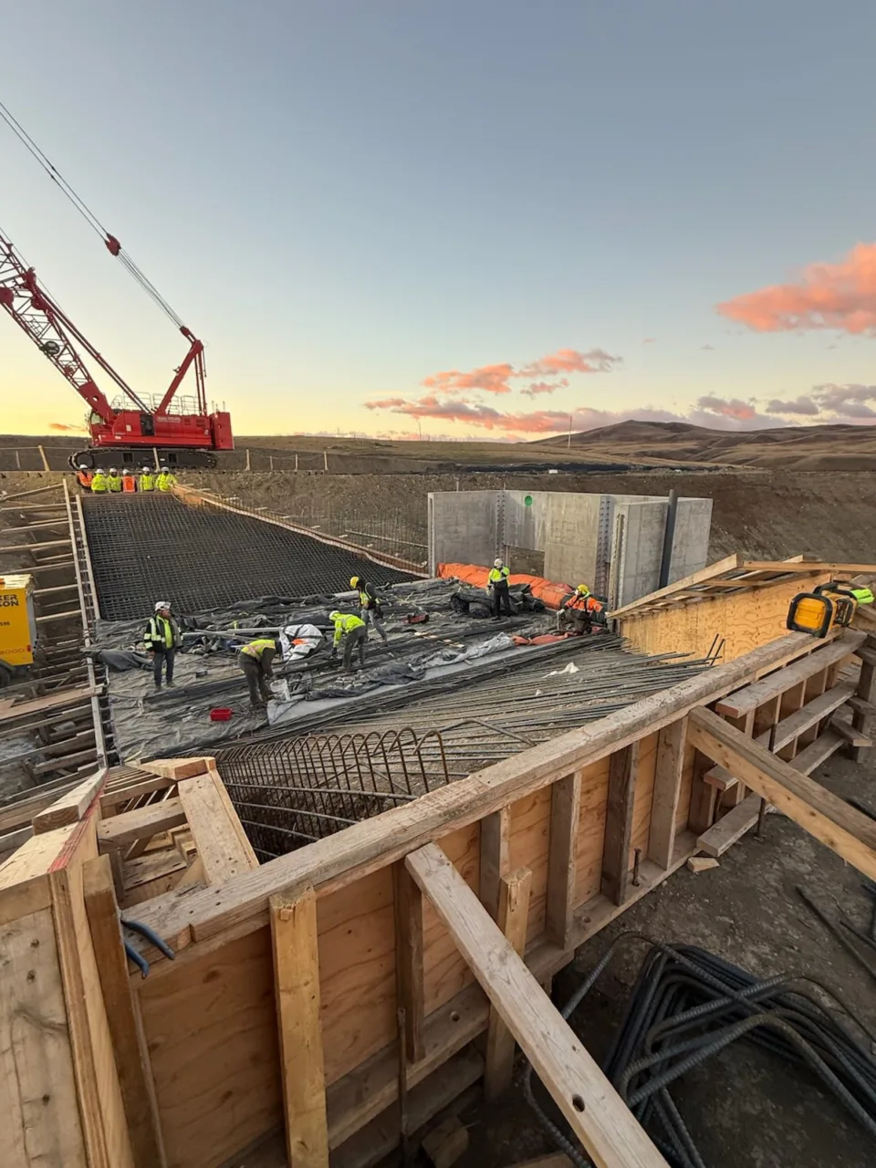 Yesterday, the crew put in some serious work pouring the apron wall on the Hall’s Coulee Outlet m— and while Mother Nature brought the wind and made for a tough day on site, the sky more than made up for it. Chief Mountain and the sky was putting on a show of its own, and I couldn’t resist sharing the view. No filters needed for this one!