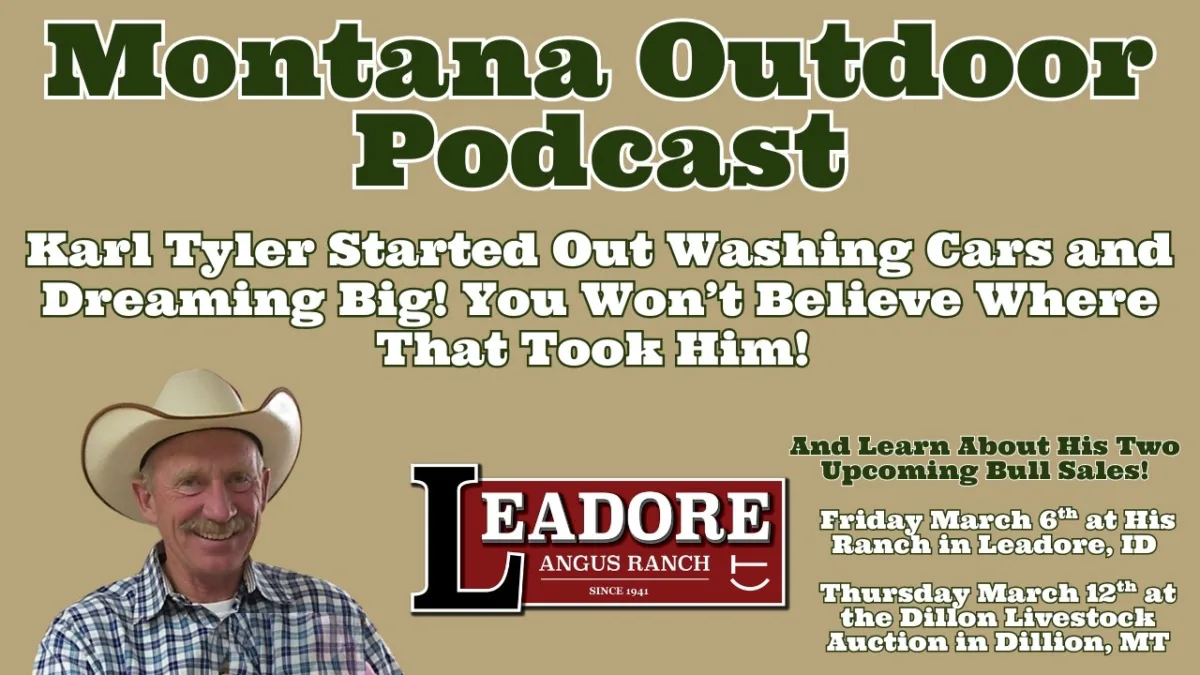 This week on the Montana Outdoor Podcast your host Downrigger Dale has a truly amazing discussion with business entrepreneur Karl Tyler. Karl had a dream from the time he was in 8th grade, he wanted to own a ranch and raise and sell the best cattle in the world. The problem was he did not have even remotely close to the money needed to buy a ranch let alone cattle. He headed to college to study animal sciences and found out he could not afford to stay in school unless he found a job. He got a job washing cars at a car dealership and with a lot of elbow grease, a can-do spirit and a big dream everything changed. He would later buy that dealership where he washed cars and then another dealership and another and another and, well, you just have to watch this podcast. It is an amazing story that will without a doubt inspire you. So, did he ever get that cattle ranch? Oh yeah and wait until you hear about the cattle that are on that ranch. They just might be the best in the world, In fact he is having two huge bull sales coming up on the March 6th at his ranch in Leadore, Idaho and on March 12th at the Dillion livestock auction. If you are in the cattle business, then these sales are without a doubt a must for you to attend at least one of them either in person or online. And if you are needing some inspiration to make that big break happen for you, watch this podcast right now!
